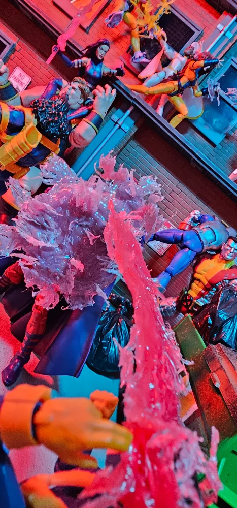 Marvel Legends Gallery: 1990's Themed X-Men vs Evil Mutants. This gallery features enhanced effects made from hot colored glue and wiring.